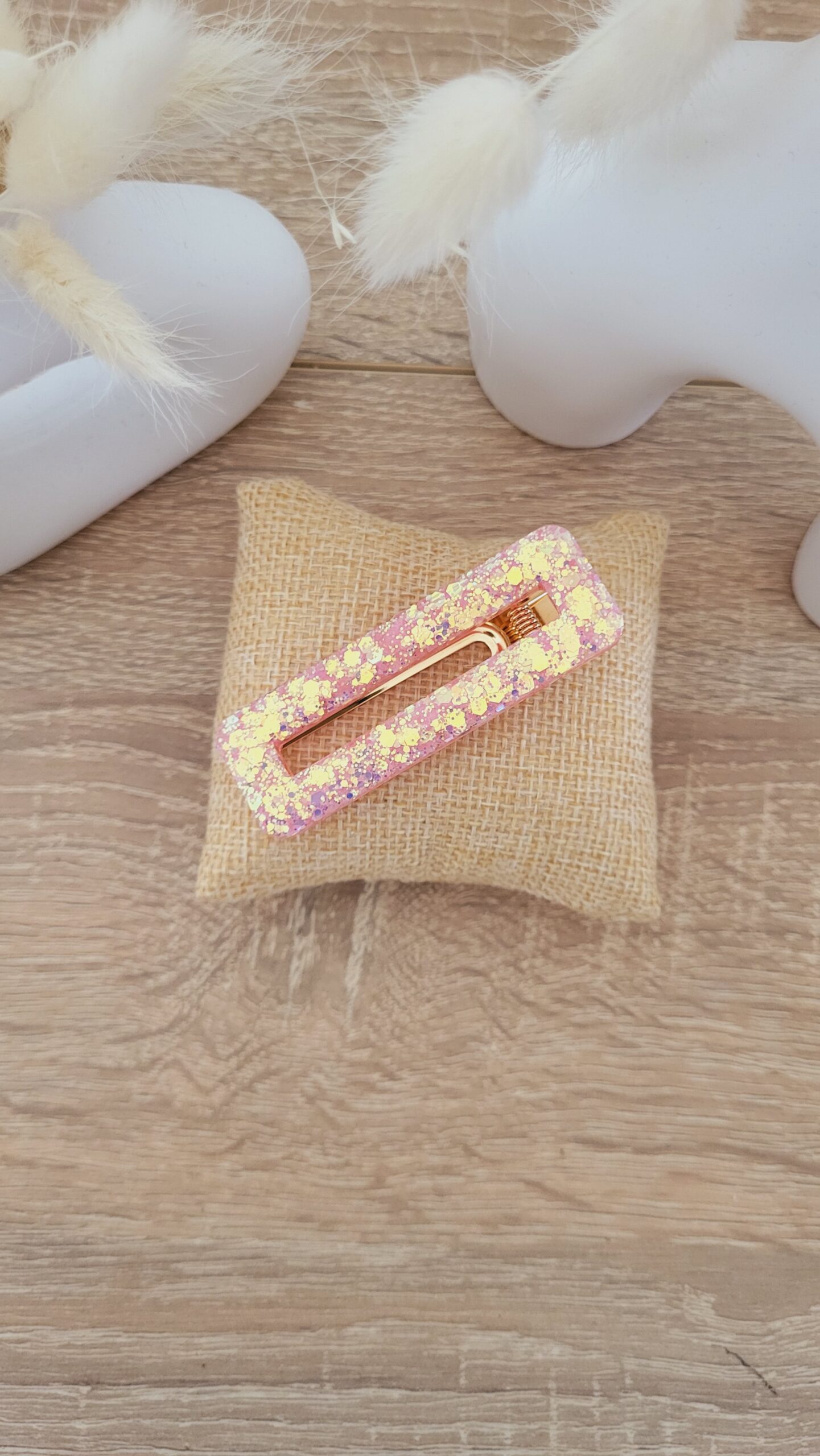 ✨️ La barrette Nina est un modèle de forme rectangulaire en résine de 6.5 x 2 centimètres.