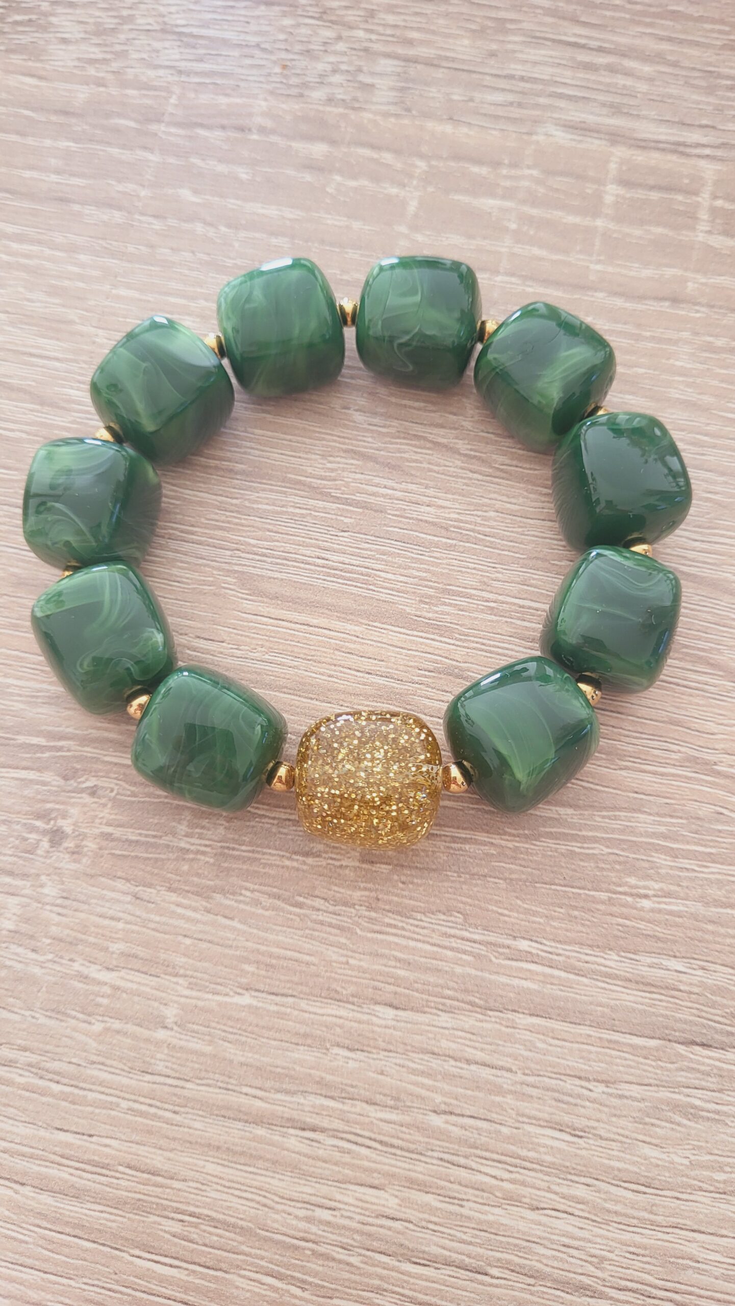 ✨️ Les perles sont montés sur un fil élastique et séparées par de petites perles dorées en acier inoxydable. 10 perles vertes et une perle dorée.