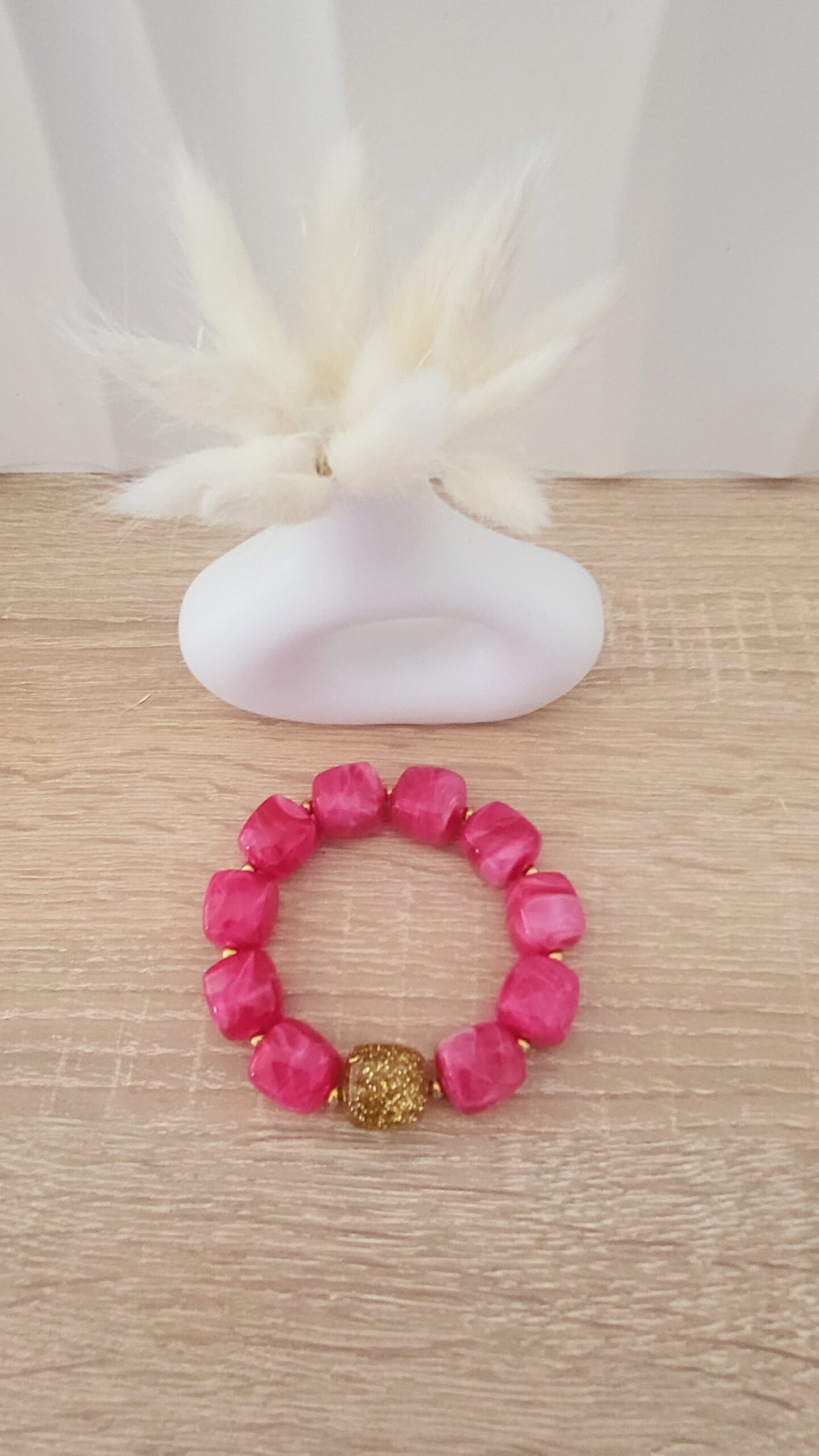 ✨️ Les perles sont montés sur un fil élastique et séparées par de petites perles dorées en acier inoxydable. 10 perles framboise et une perle dorée.