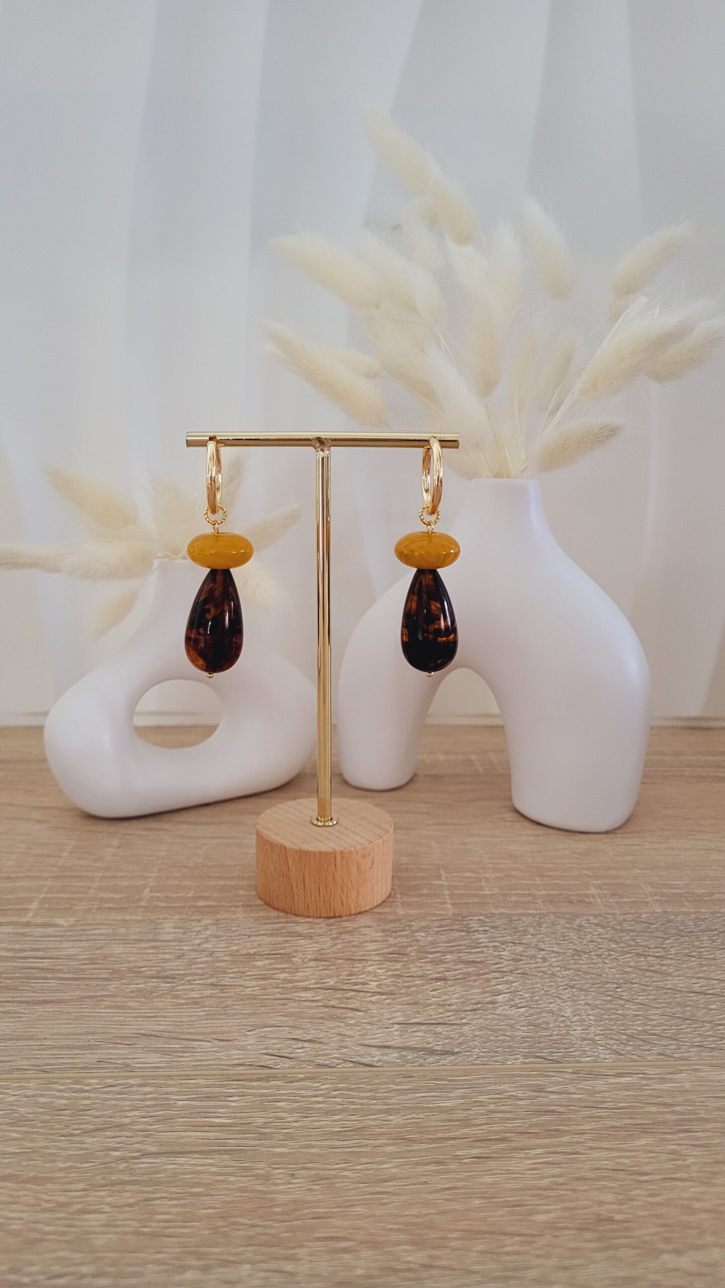 🌈 Le perle poire est ambre marbré et la perle rondelles est jaune miel marbré.