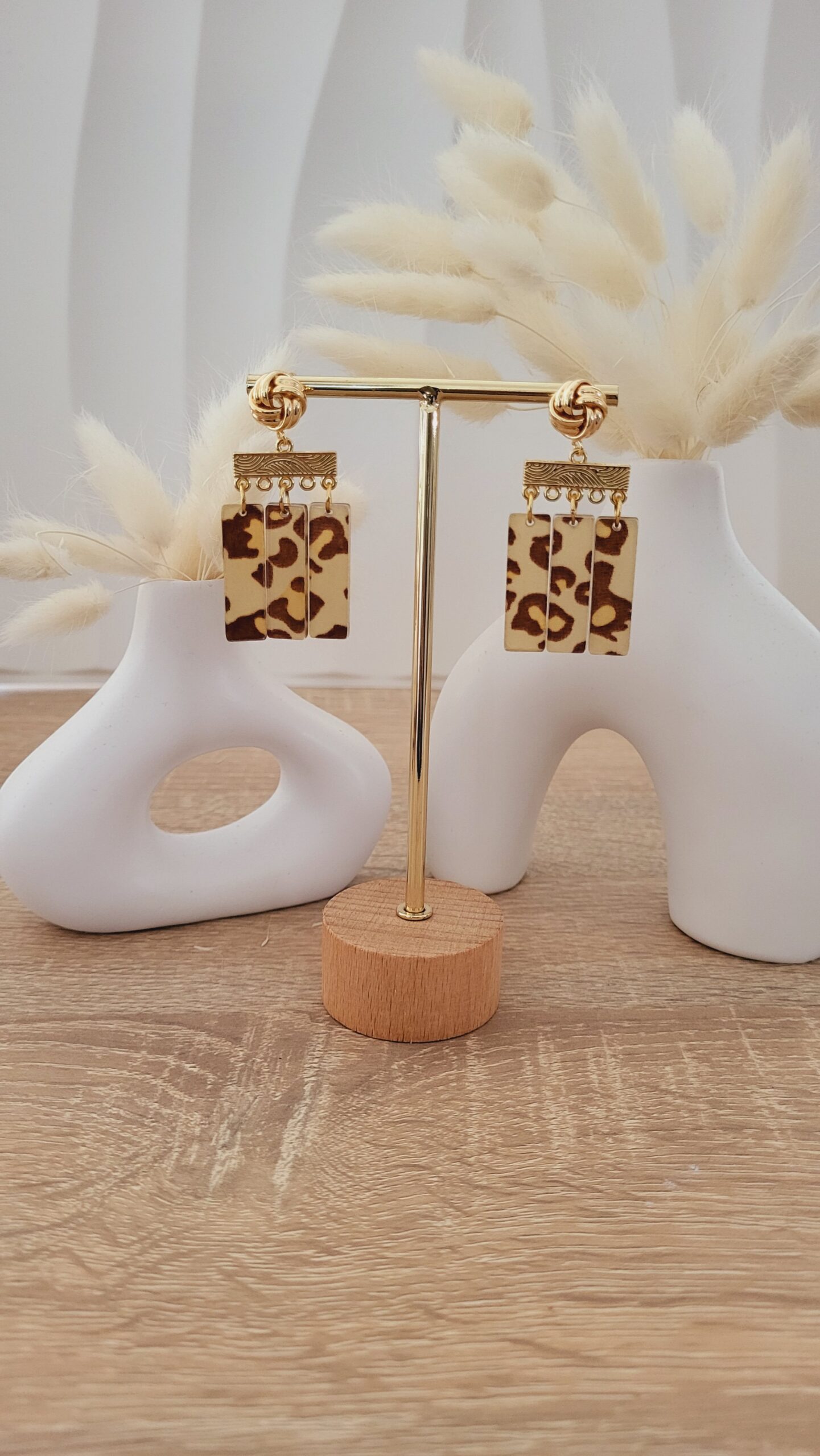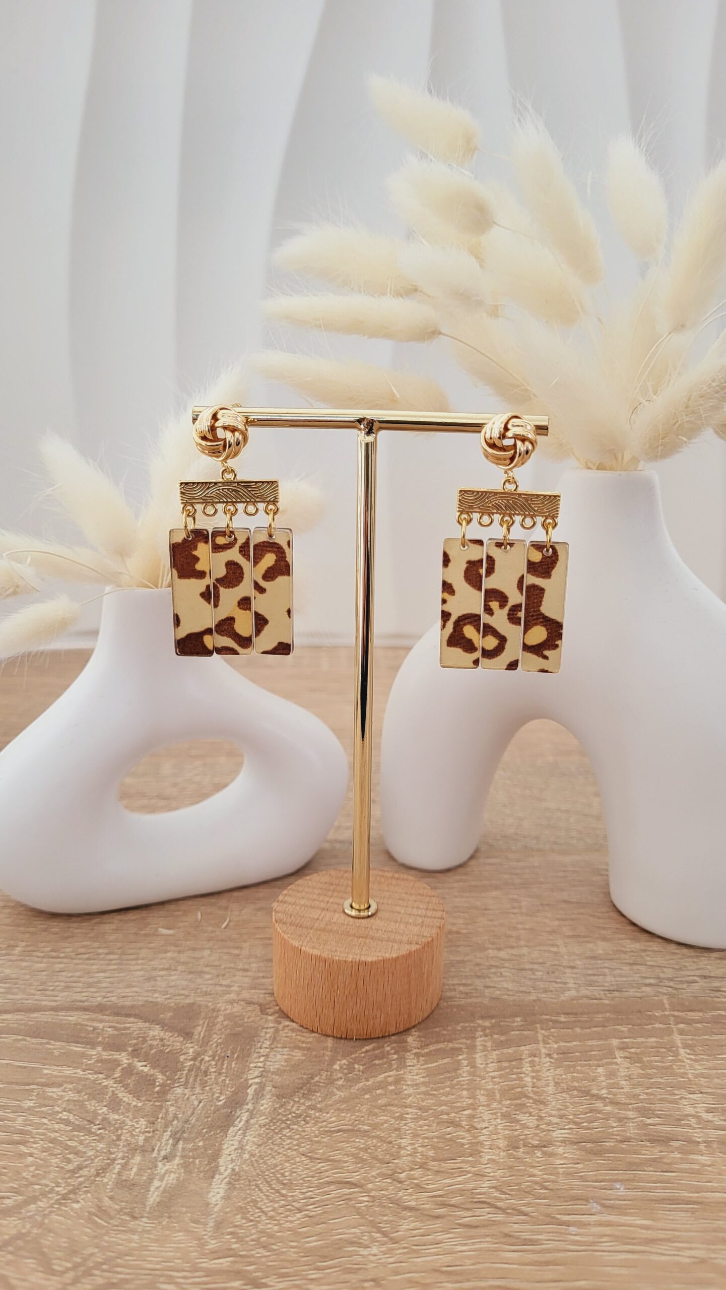 ✨️ Le modèle Colette est une paire de boucles avec trois pendentifs de forme rectangulaire de 27x8mm.