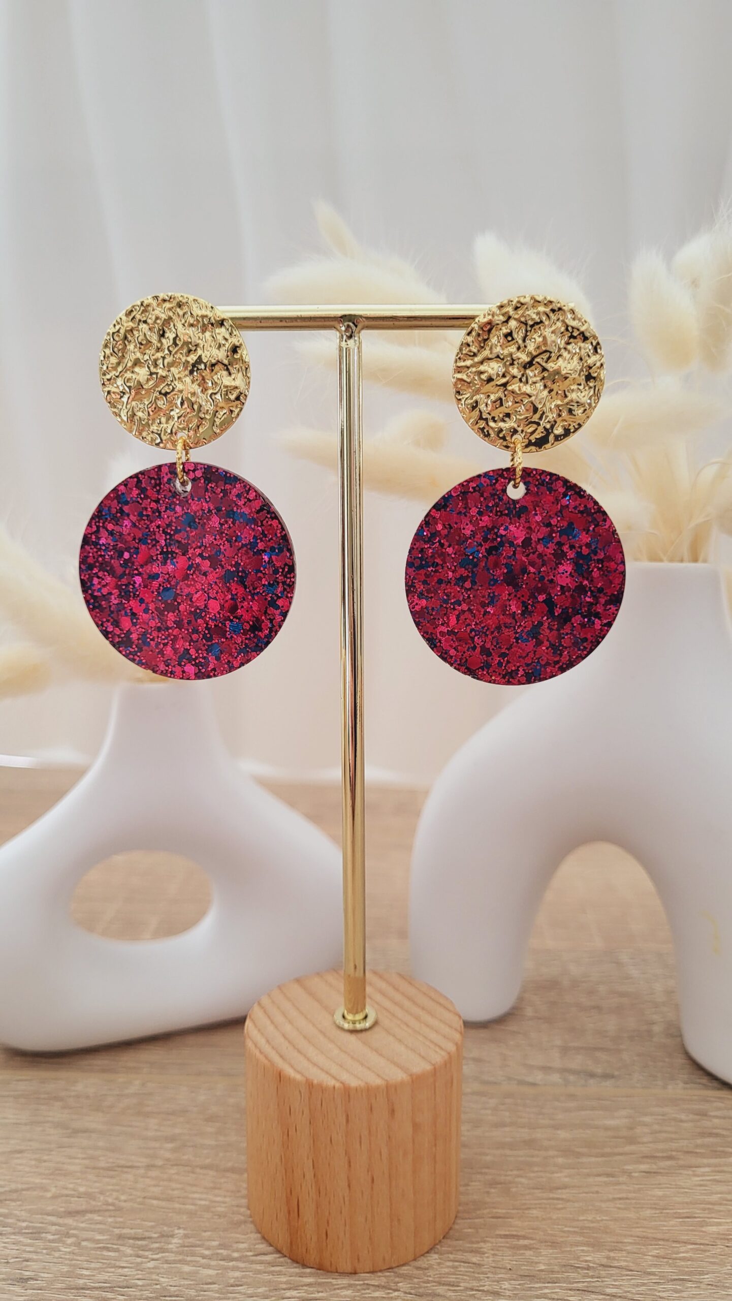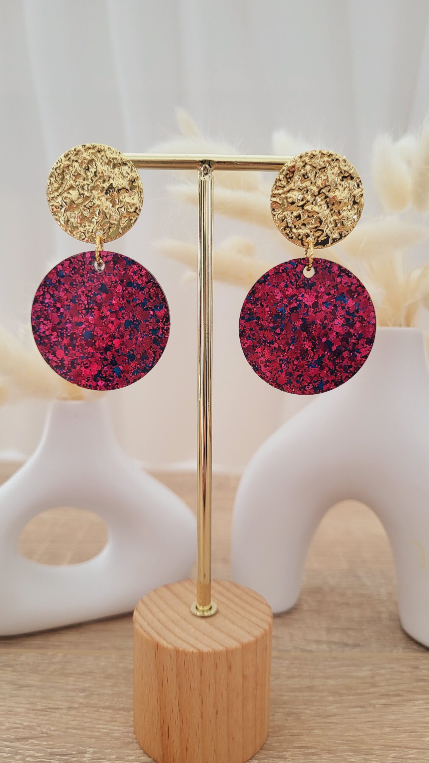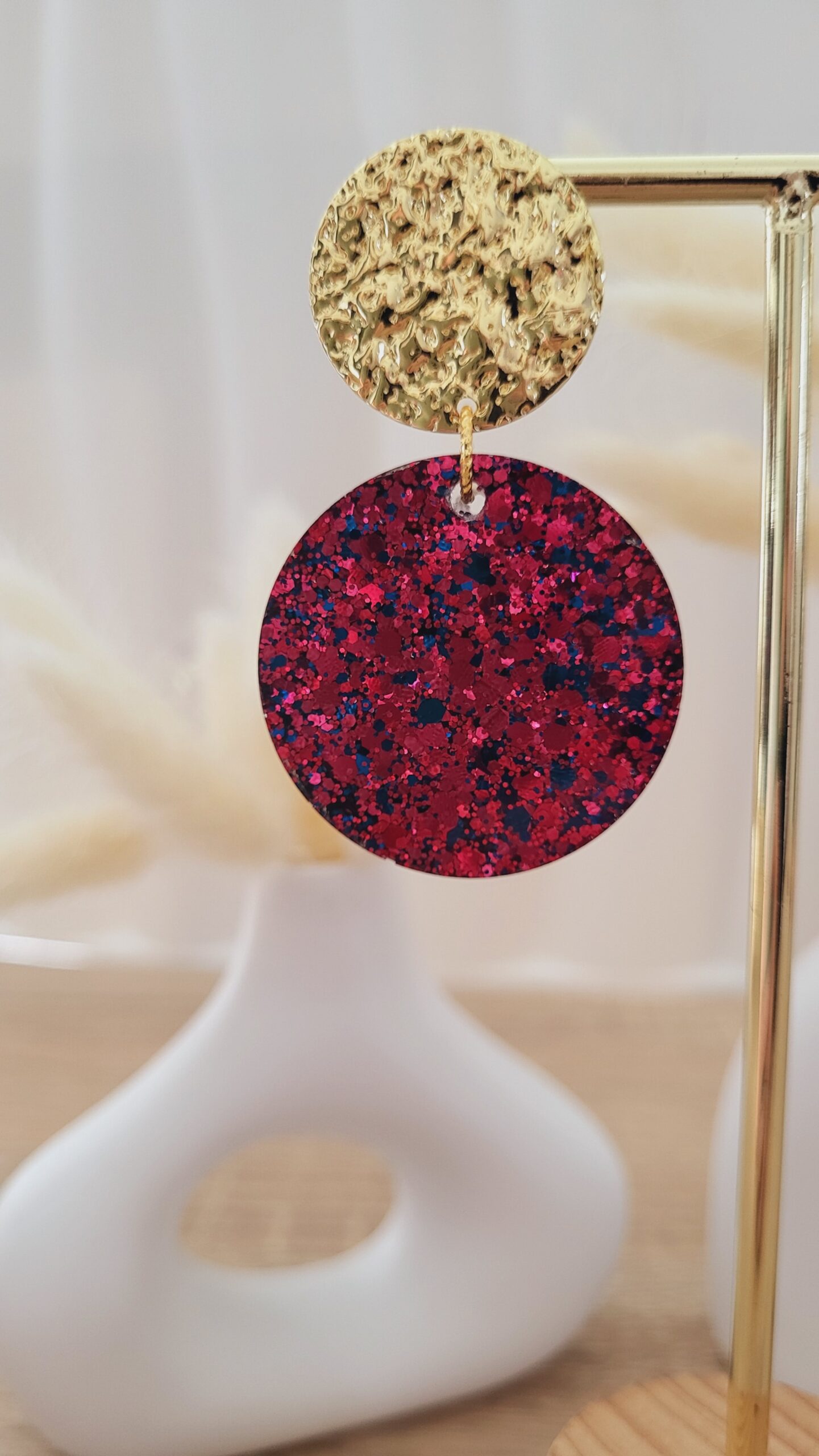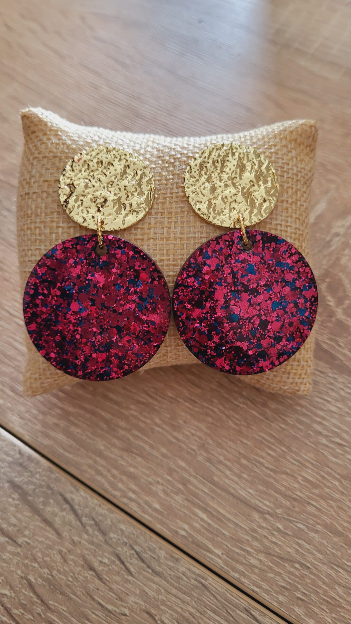 🌈 Paillettes couleur tons grenat et bleu.