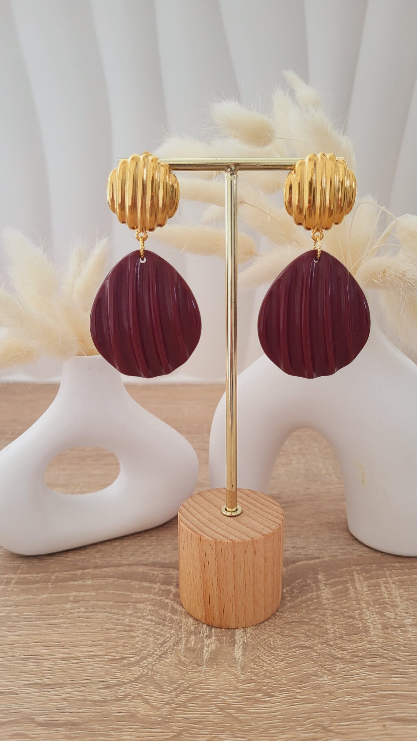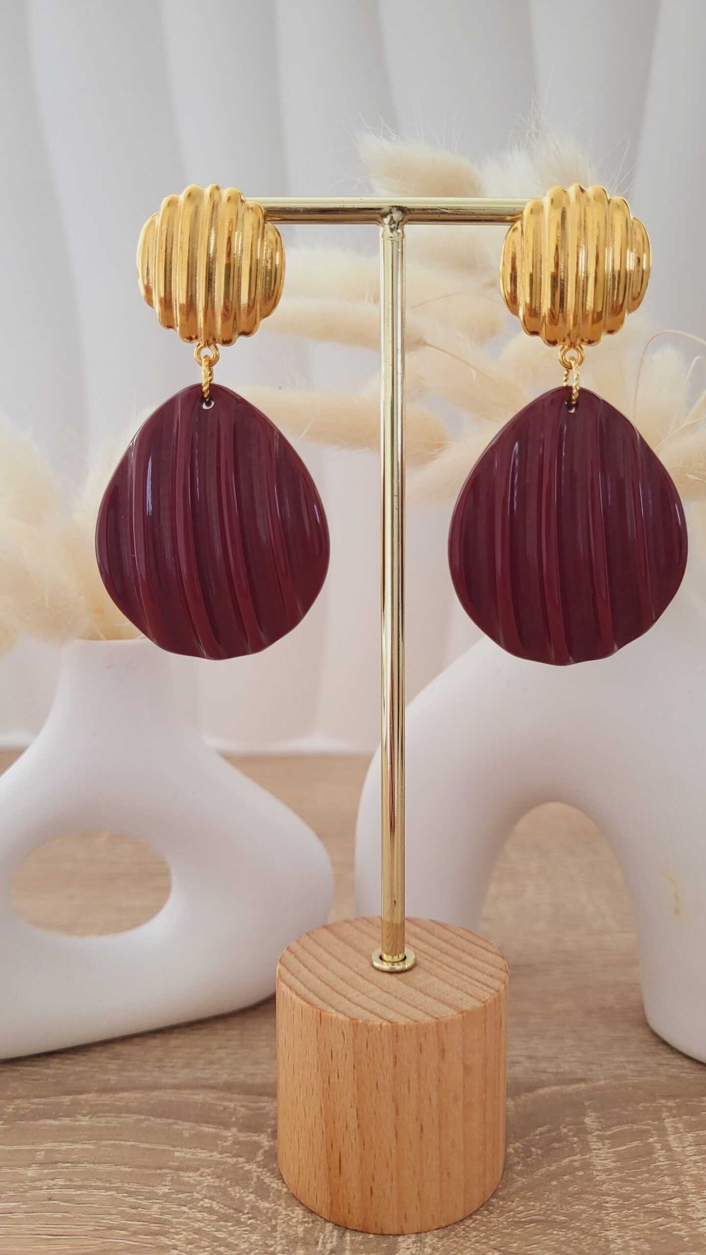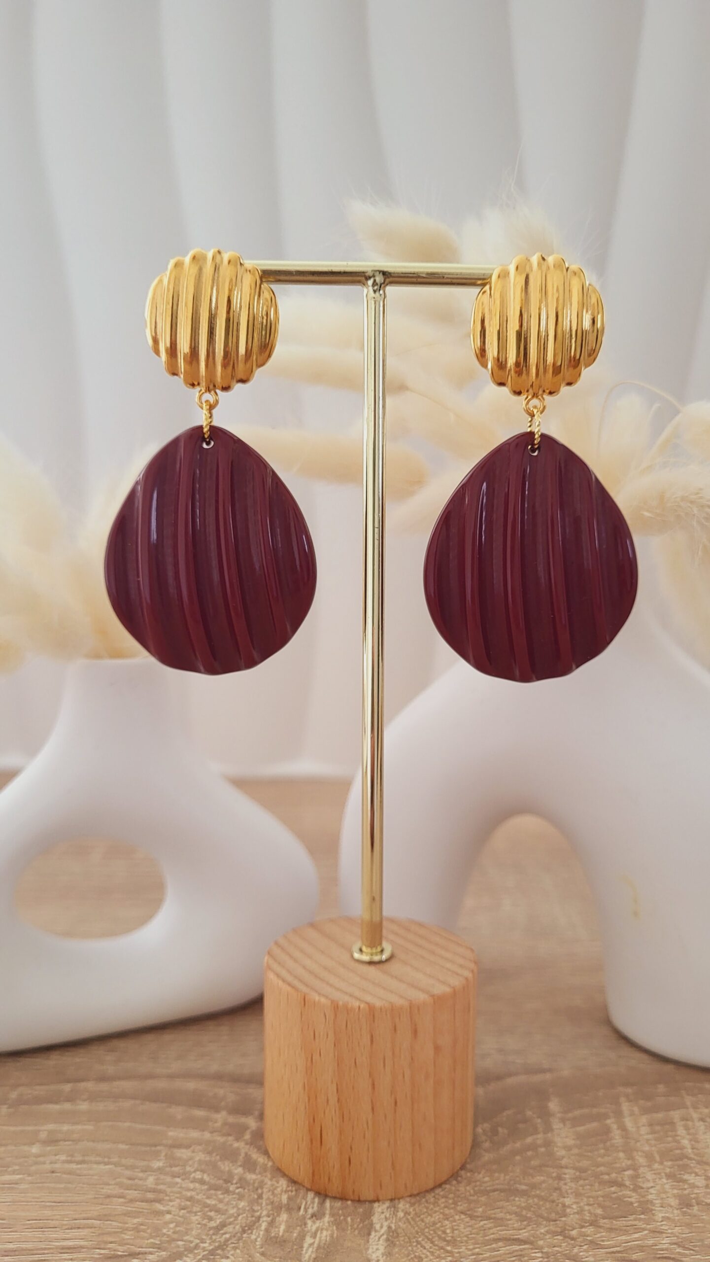 ✨️ Clous d’oreilles ronds striés de 23mm doré à l’or fin.