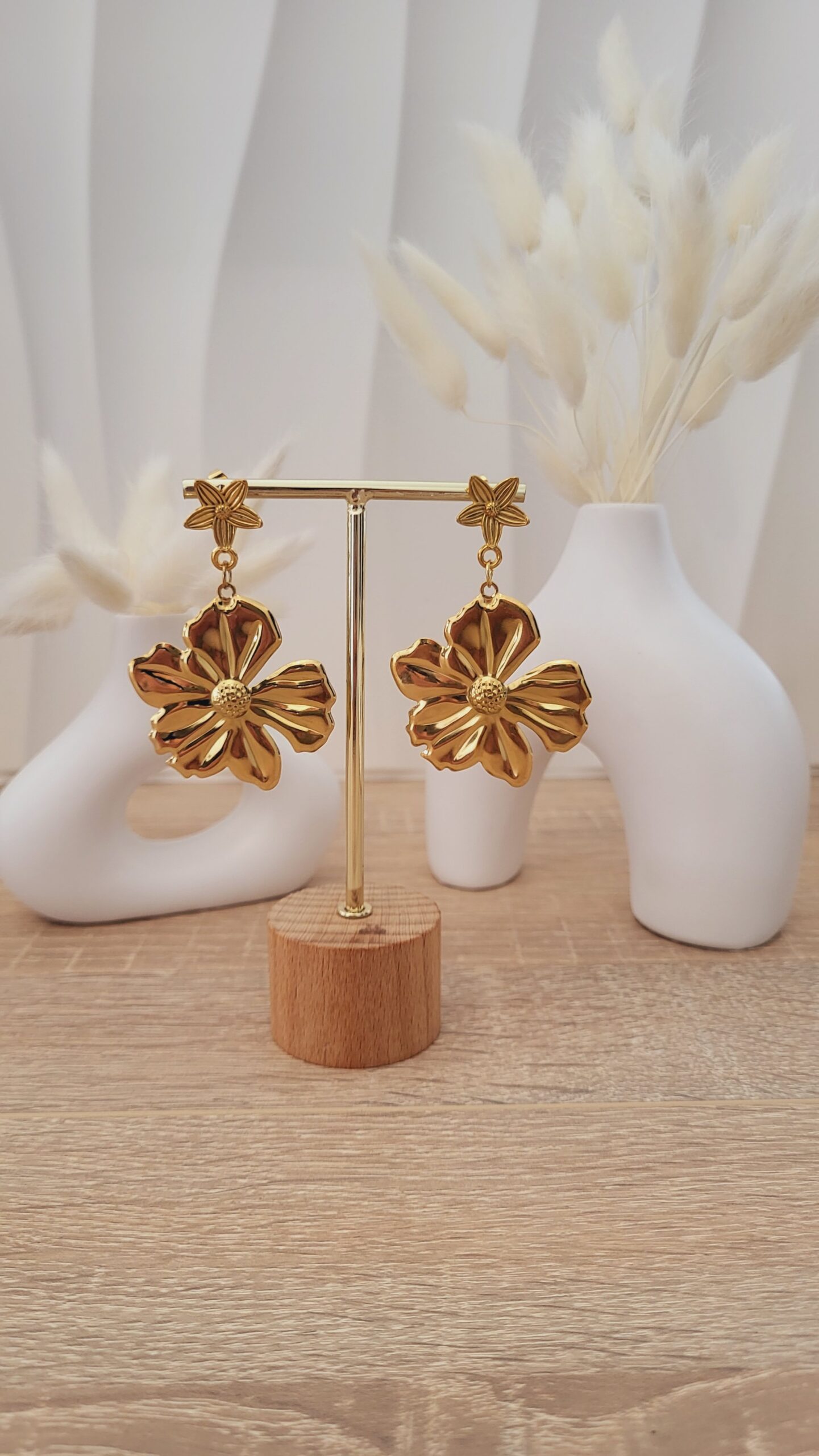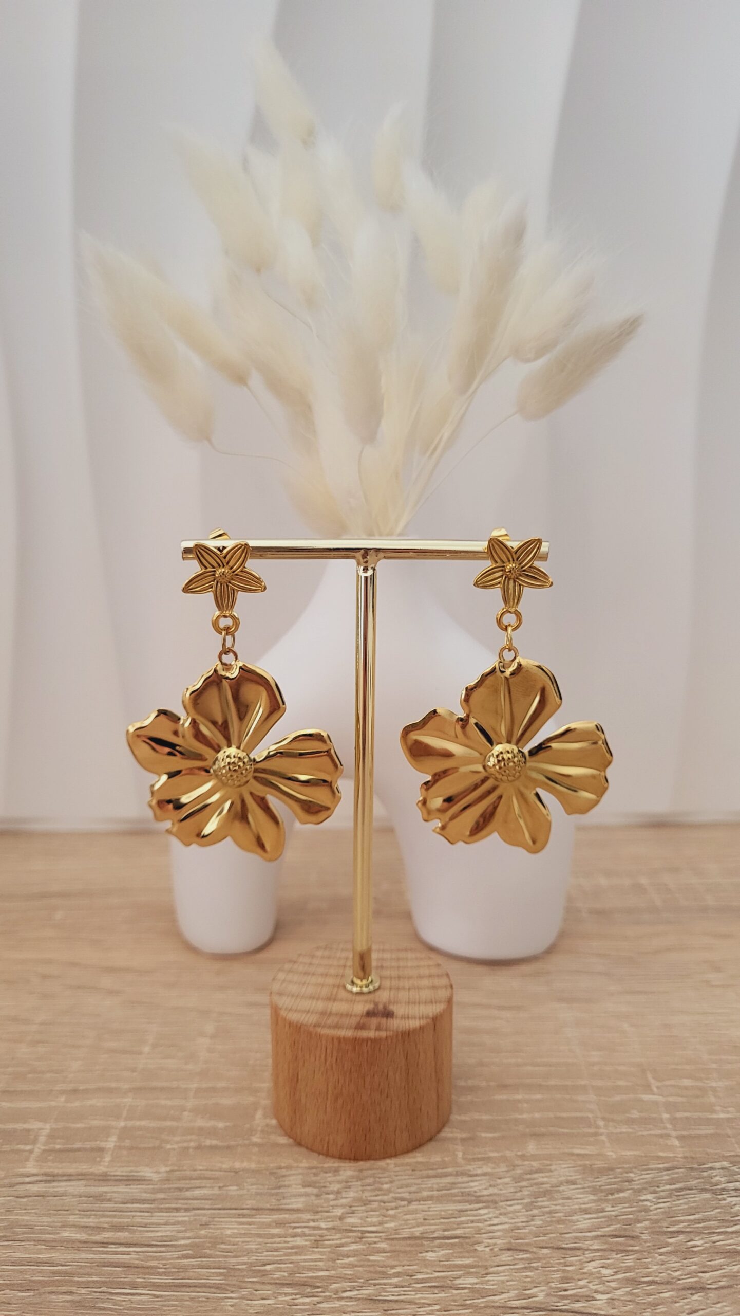✨️ Le modèle Mila est un modèle de boucles forme fleur en acier inoxydable de 43x45mm.