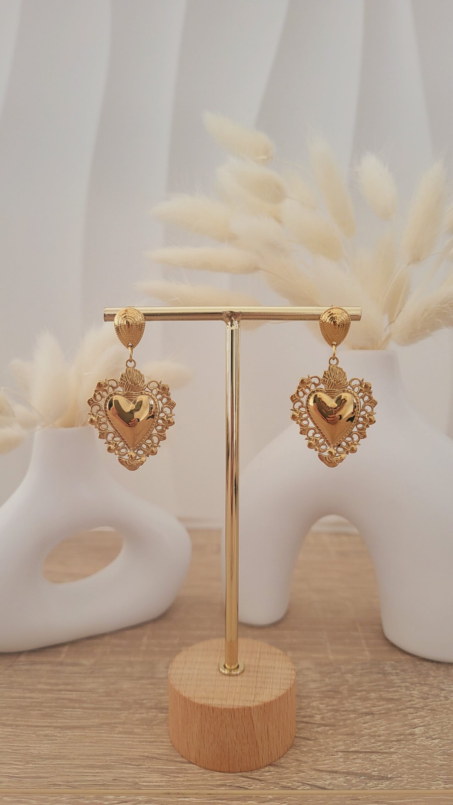 ✨️ Accompagné de clous d oreilles clous travaillés de 12x9mm en acier inoxydable 304L doré.