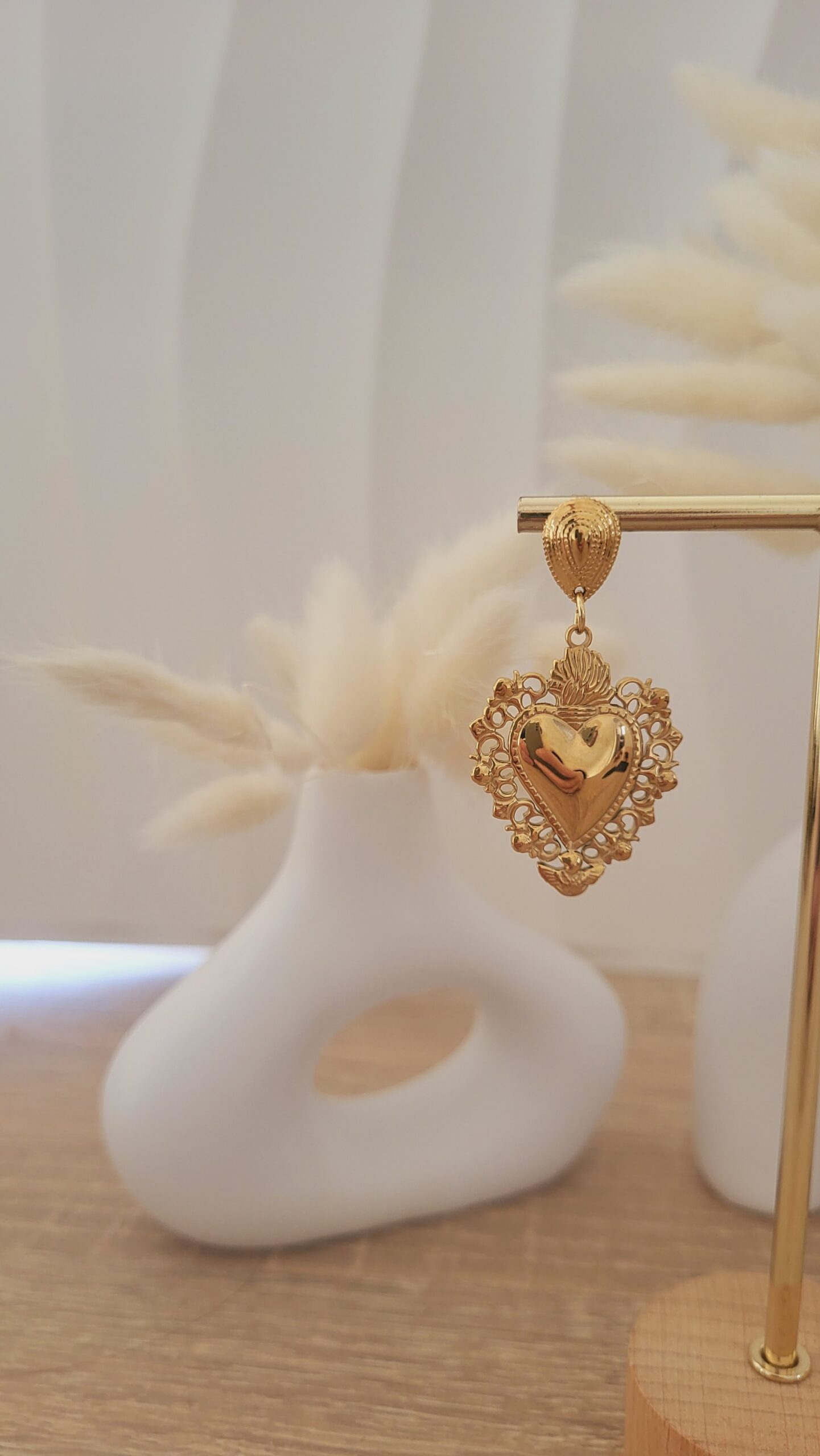 ✨️ Modèle avec un pendentif en forme de cœur ex-voto 32x25mm en acier inoxydable 304L doré.