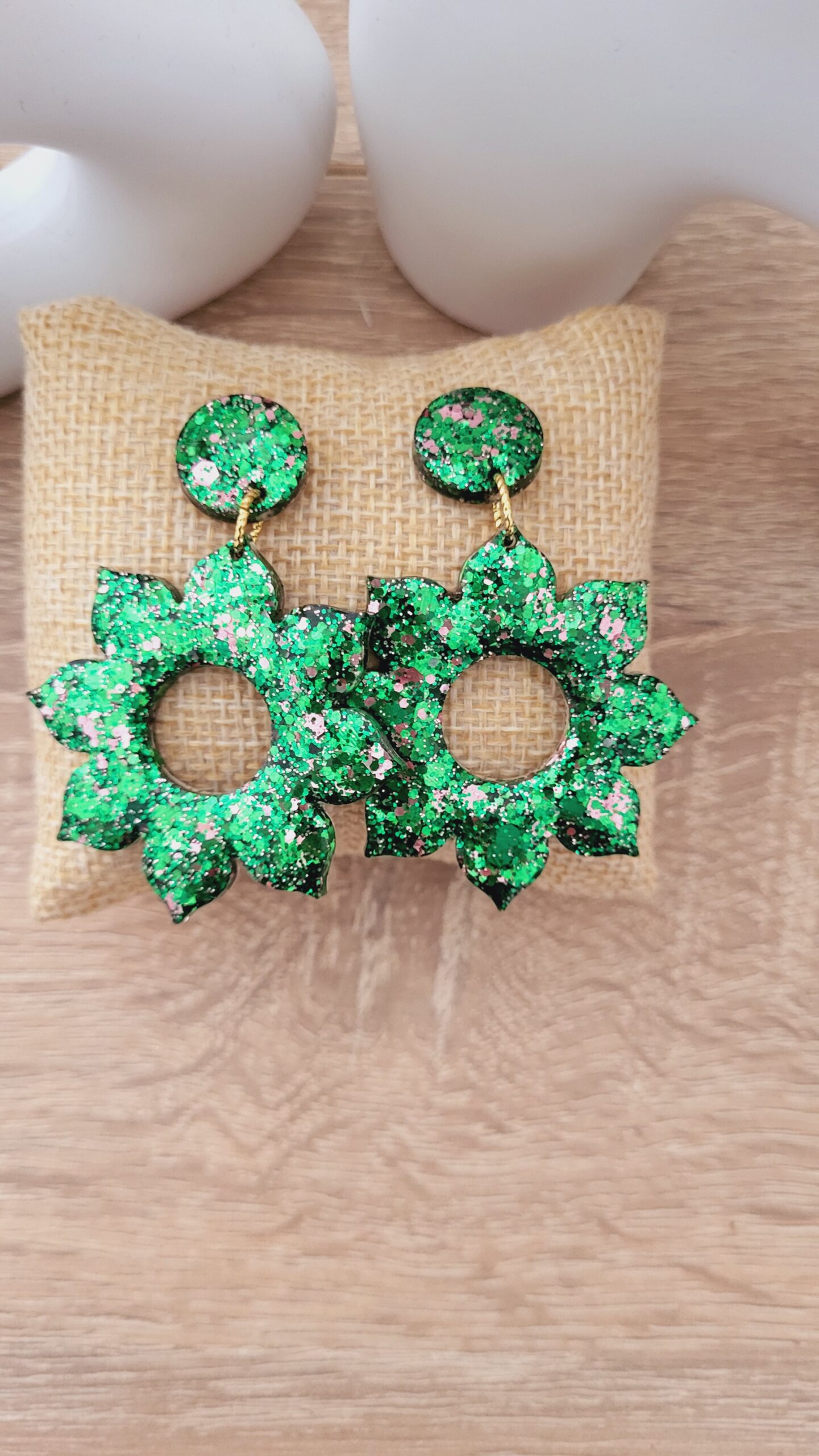 🌈 Paillettes couleur tons verts foncés et roses.