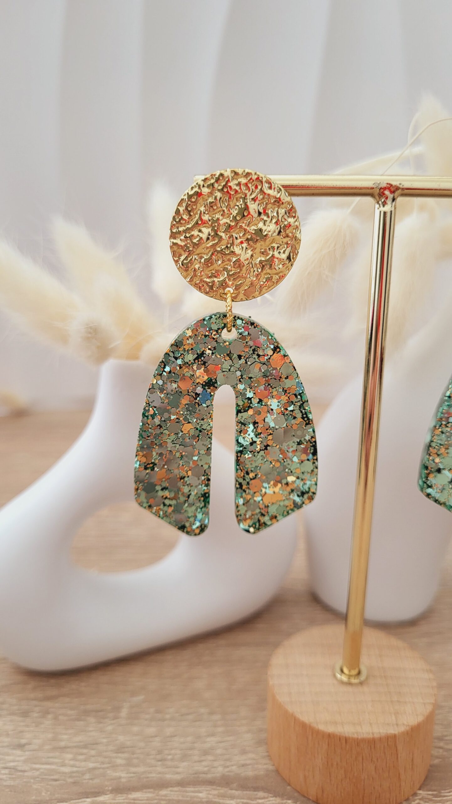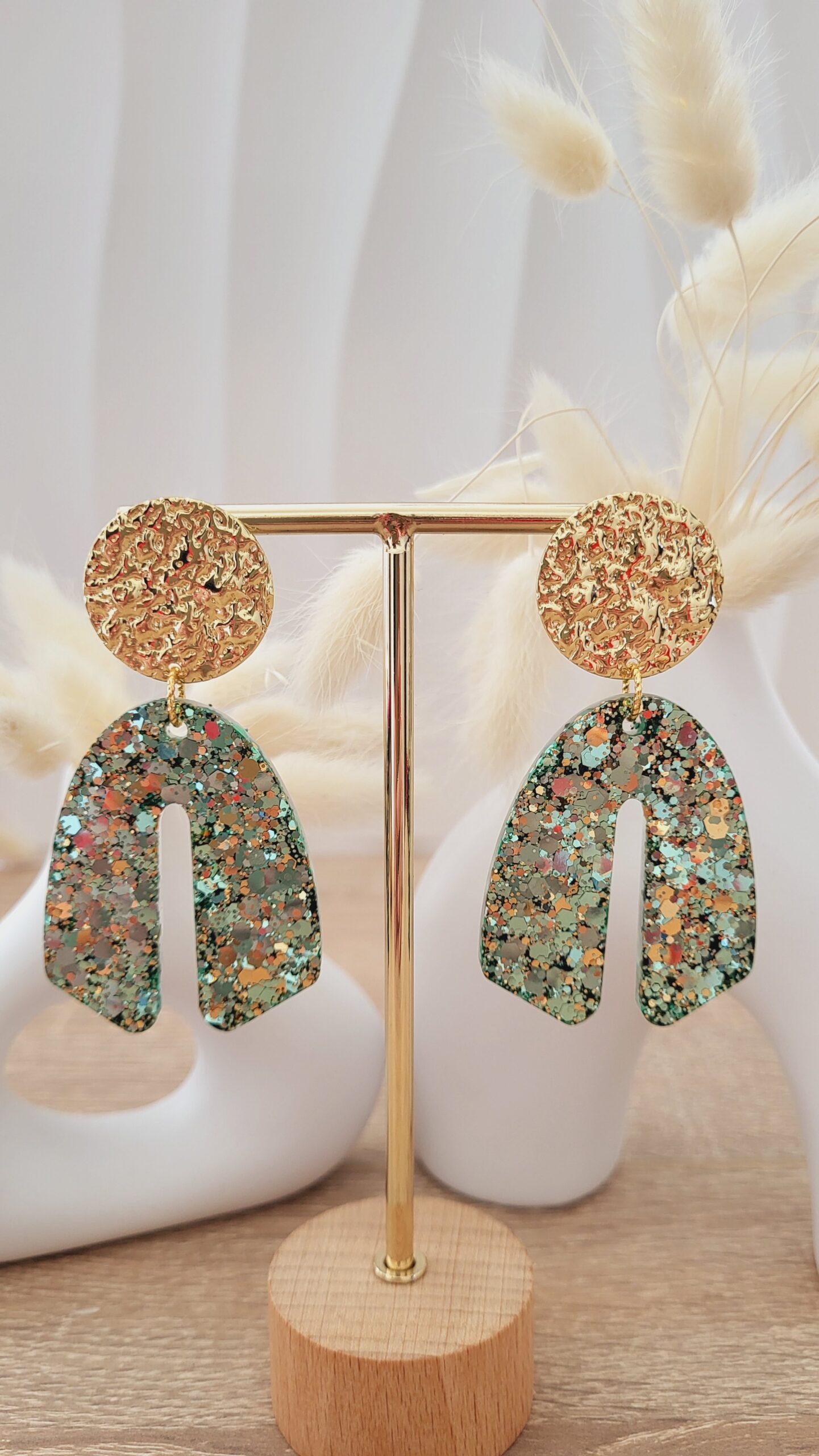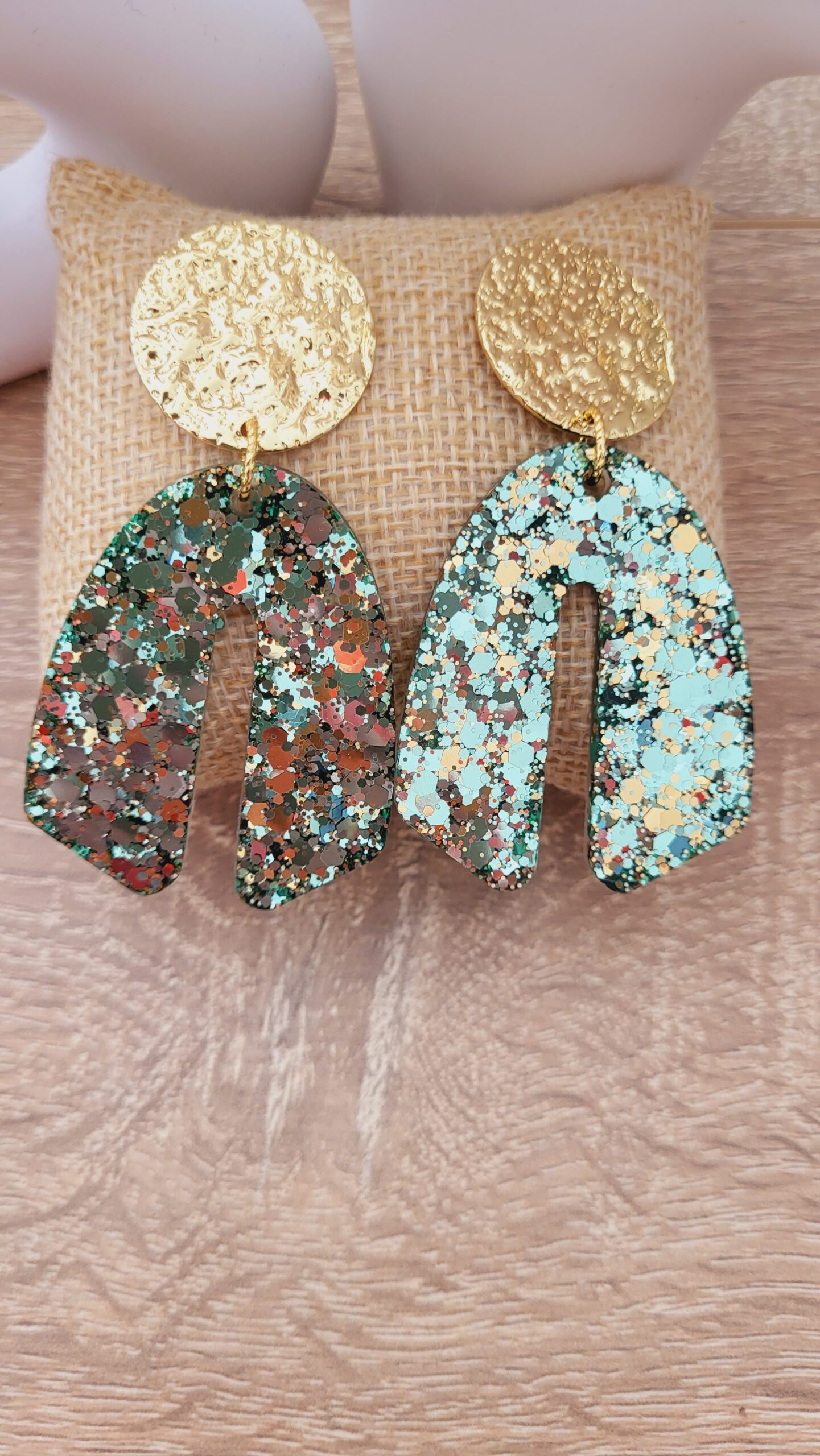 🌈 Paillettes couleur tons verts clairs et dorés.