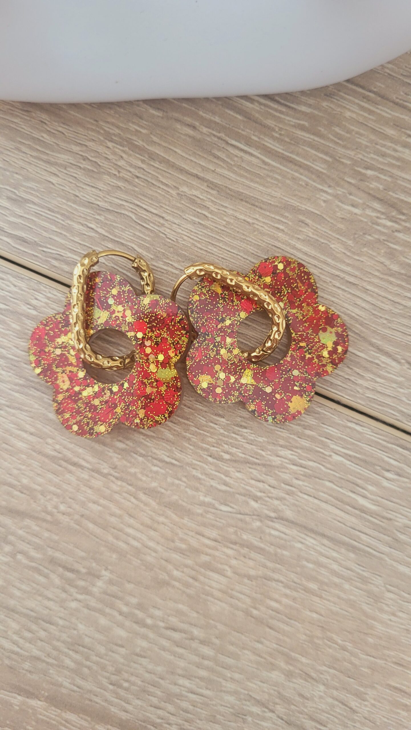 🌈 Mélange de paillettes dans les tons rouges et dorés.