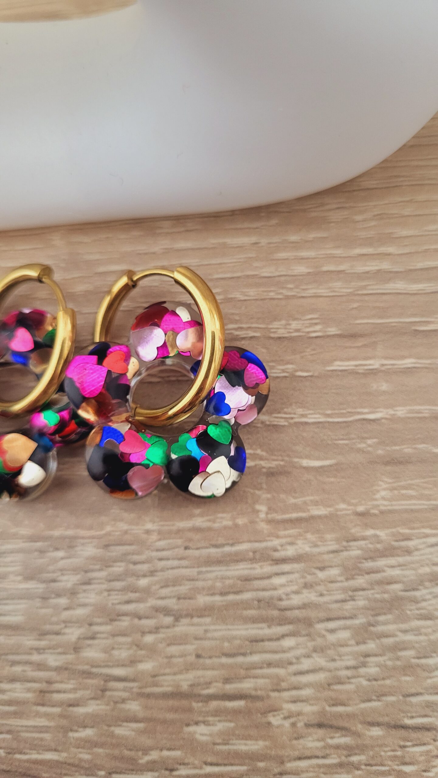 🌈 Mélange de confettis cœurs bleus/noirs/dorés/roses.