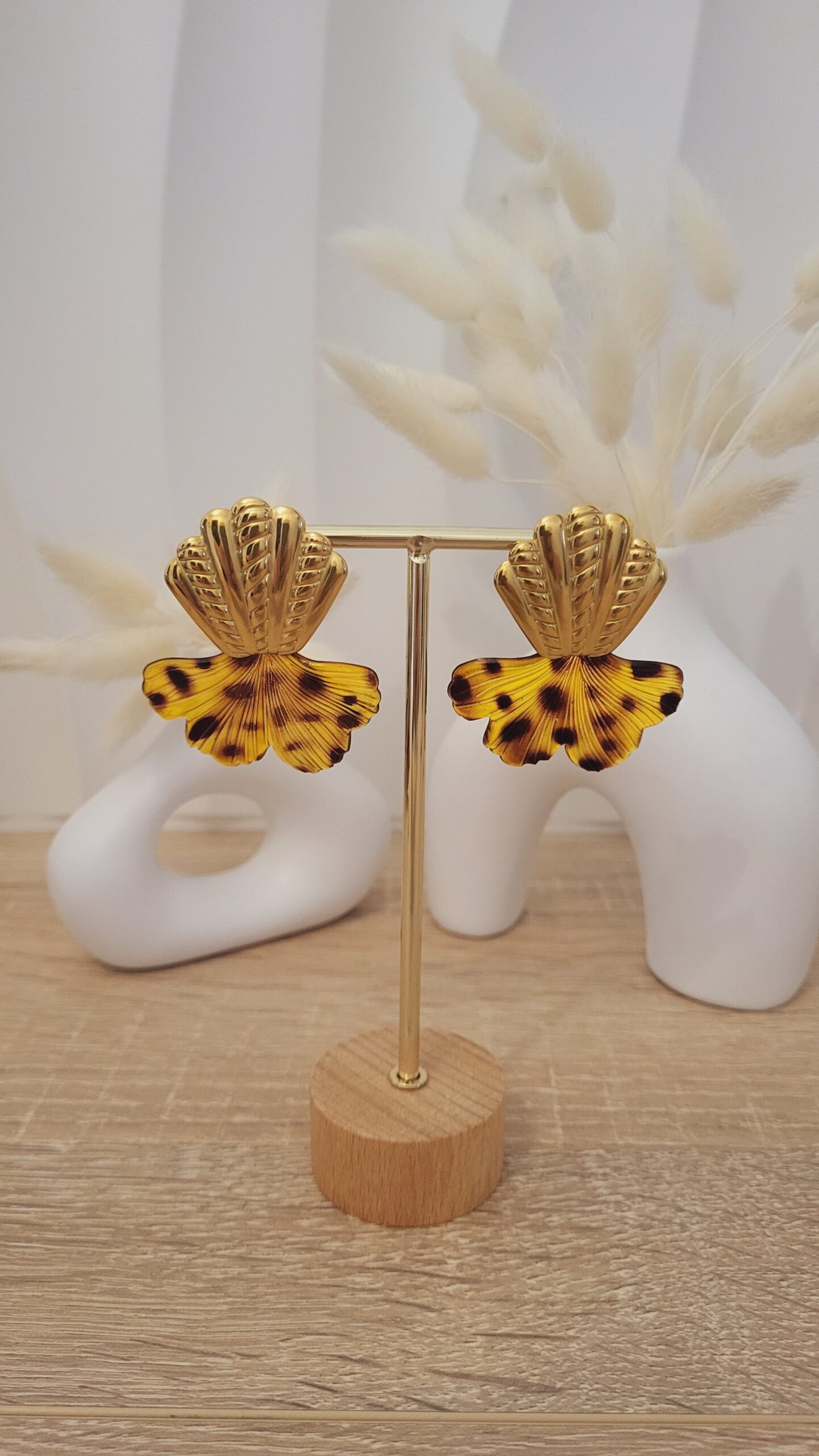 ✨️Le modèle Vénus est une boucle en forme de fleur en acrylique de 34×45 mm.