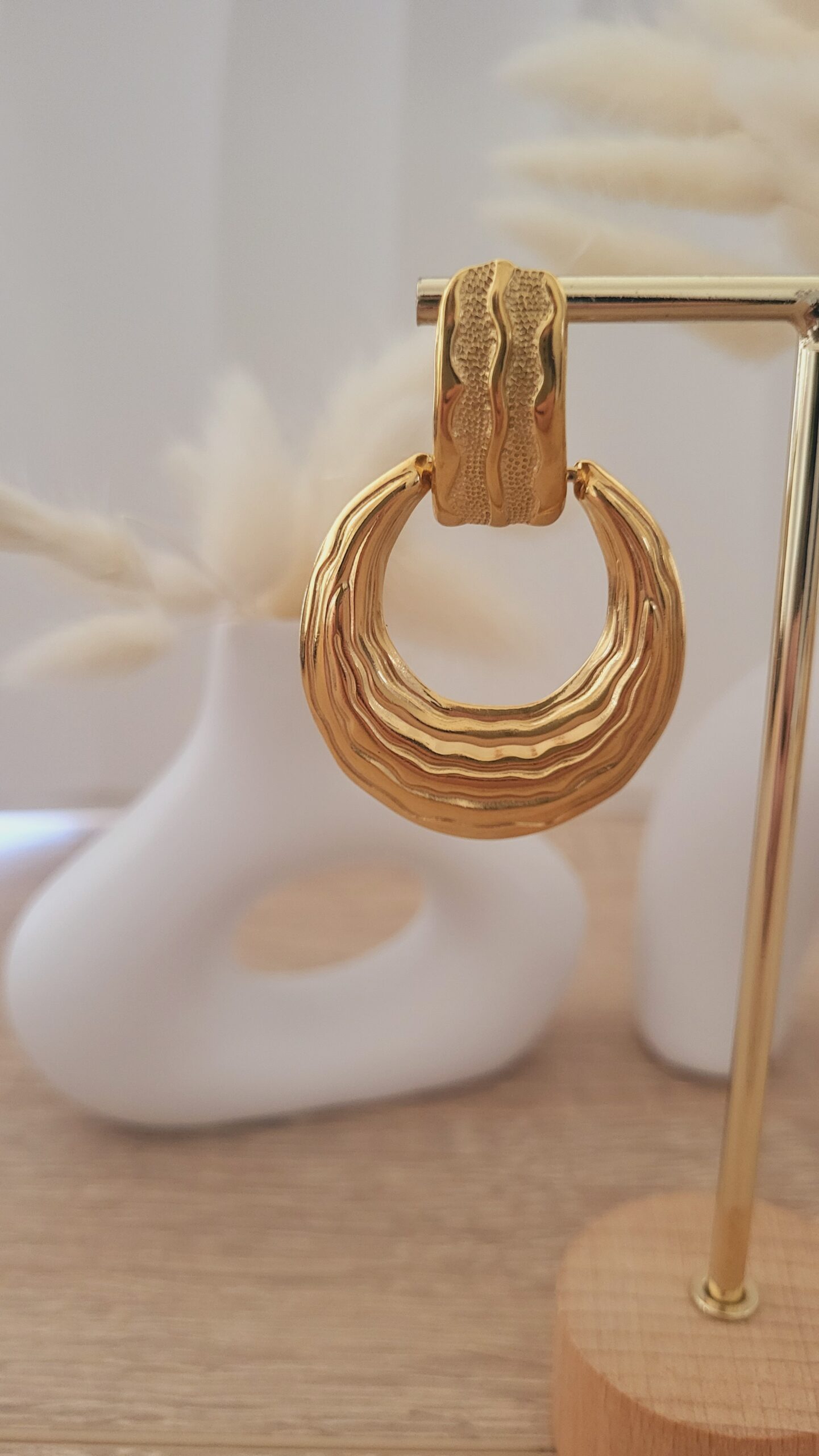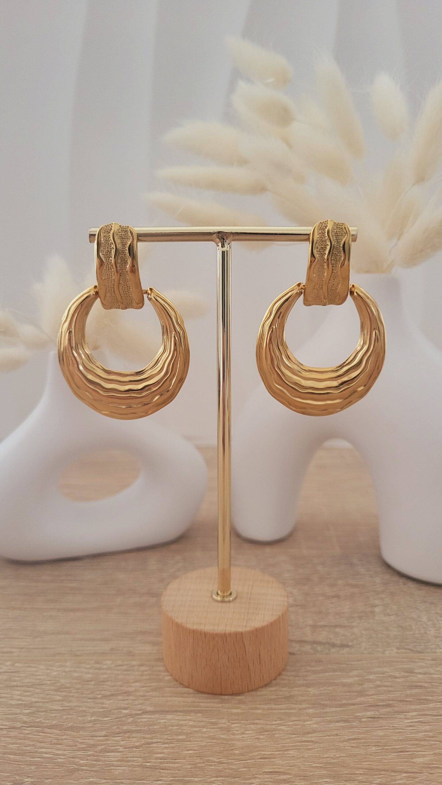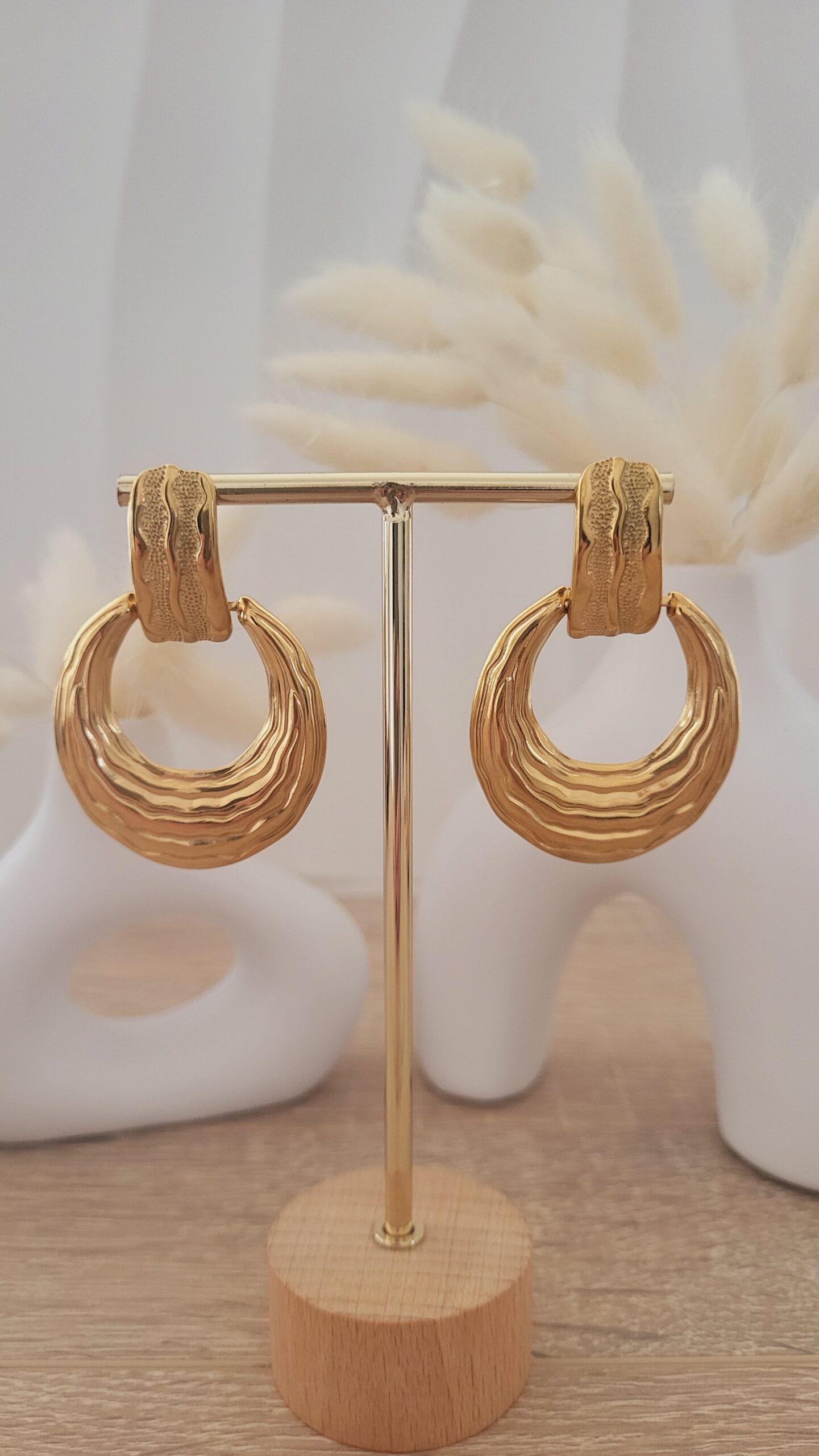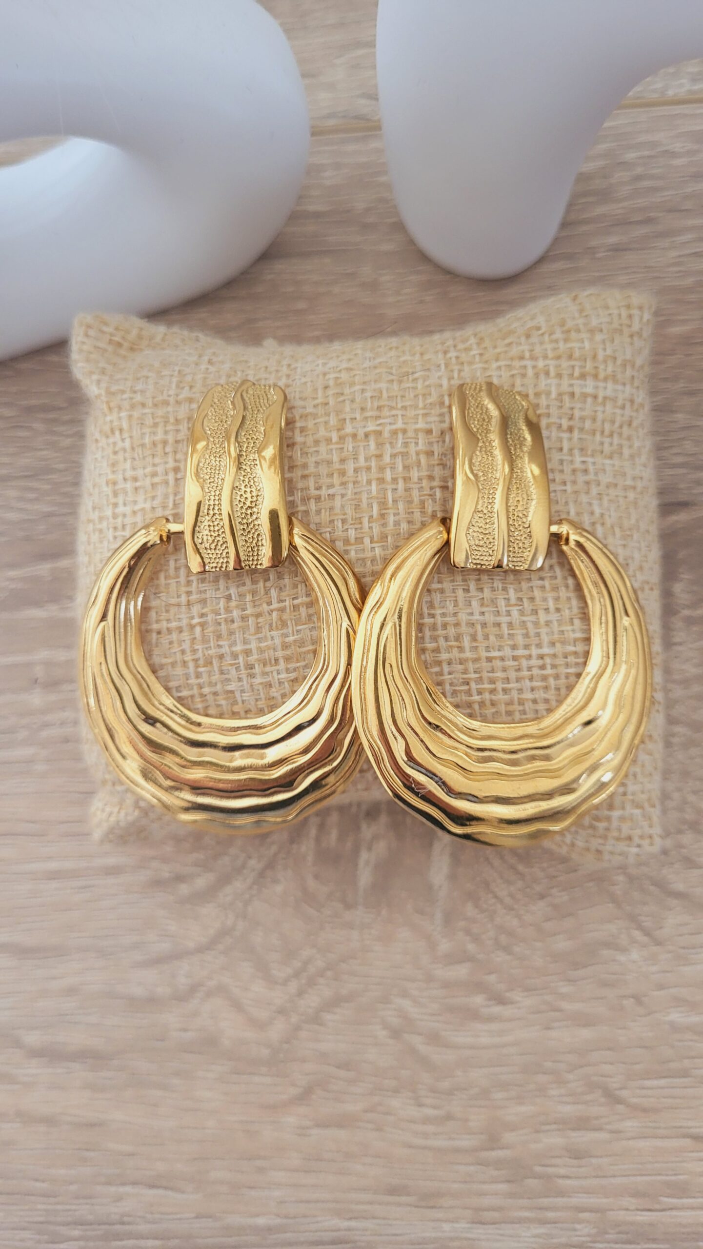 ✨️ Boucles avec pendentifs gouttes évidés effet plissé de 39x36mm en acier inoxydable 304L.