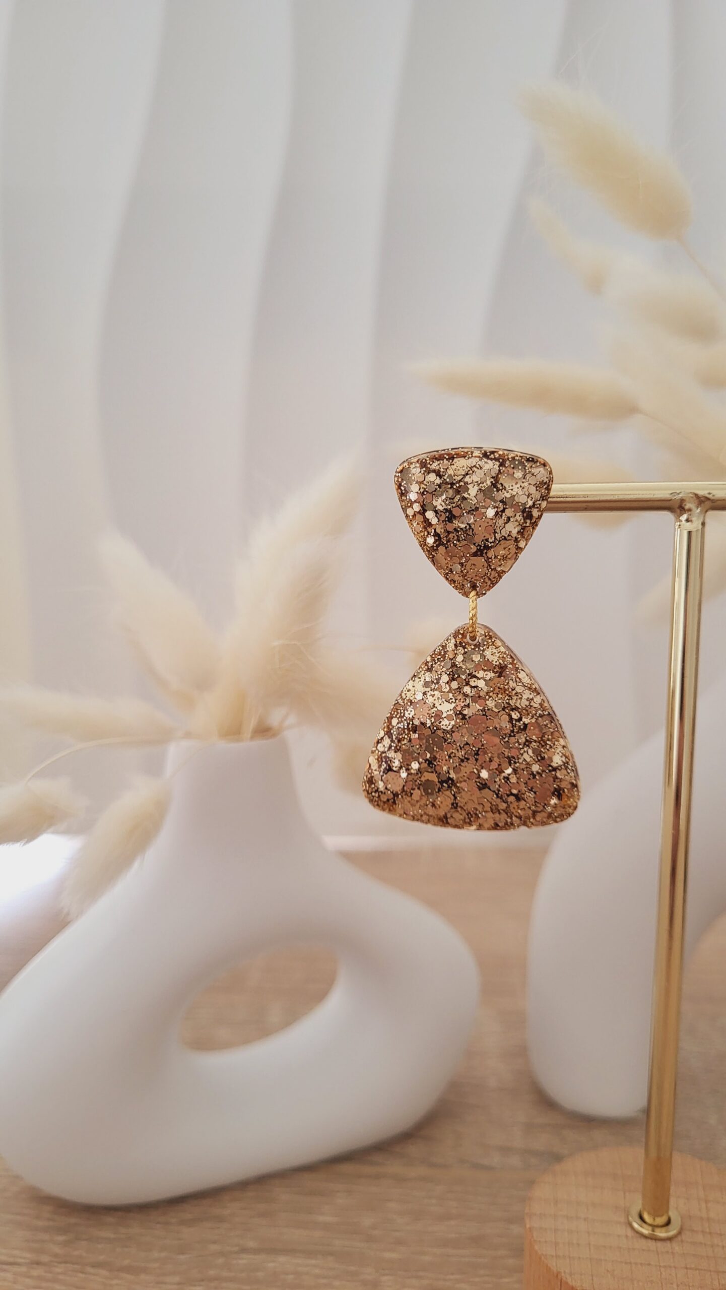 ✨️ Boucles avec pendentifs en forme de triangles en résine de 50mm.