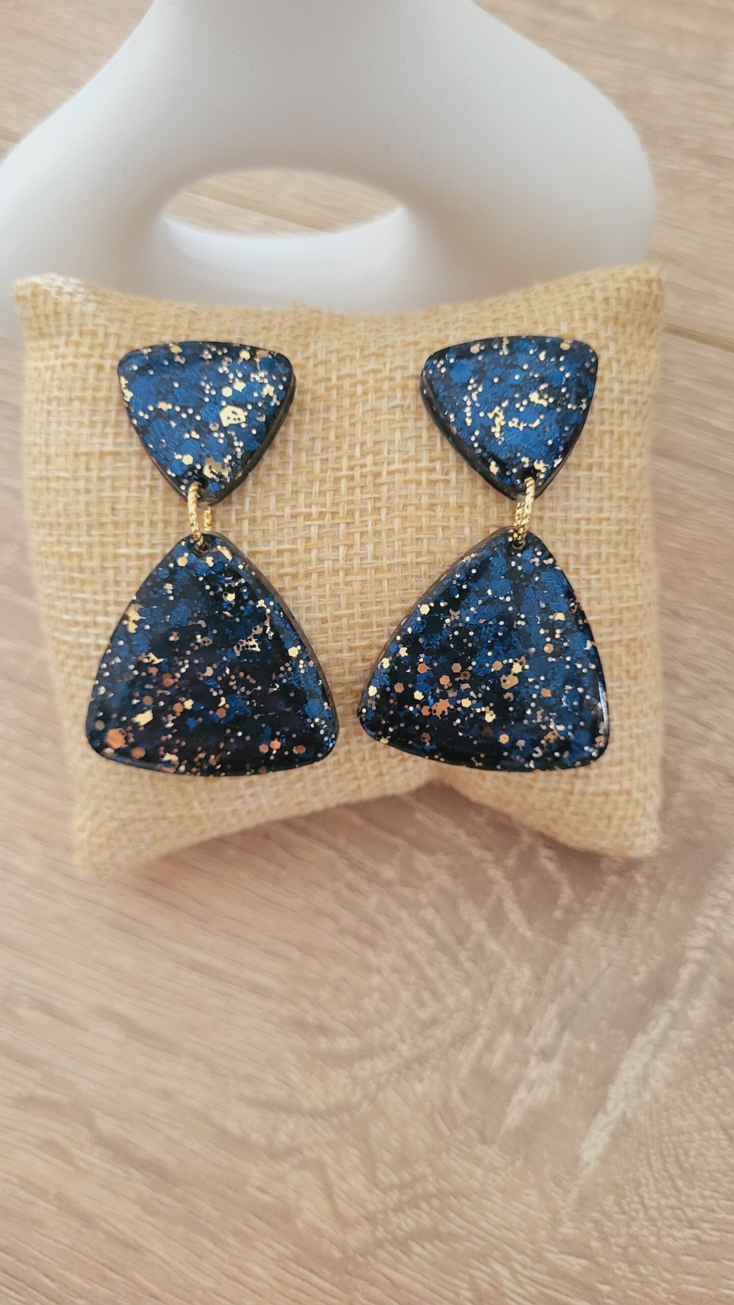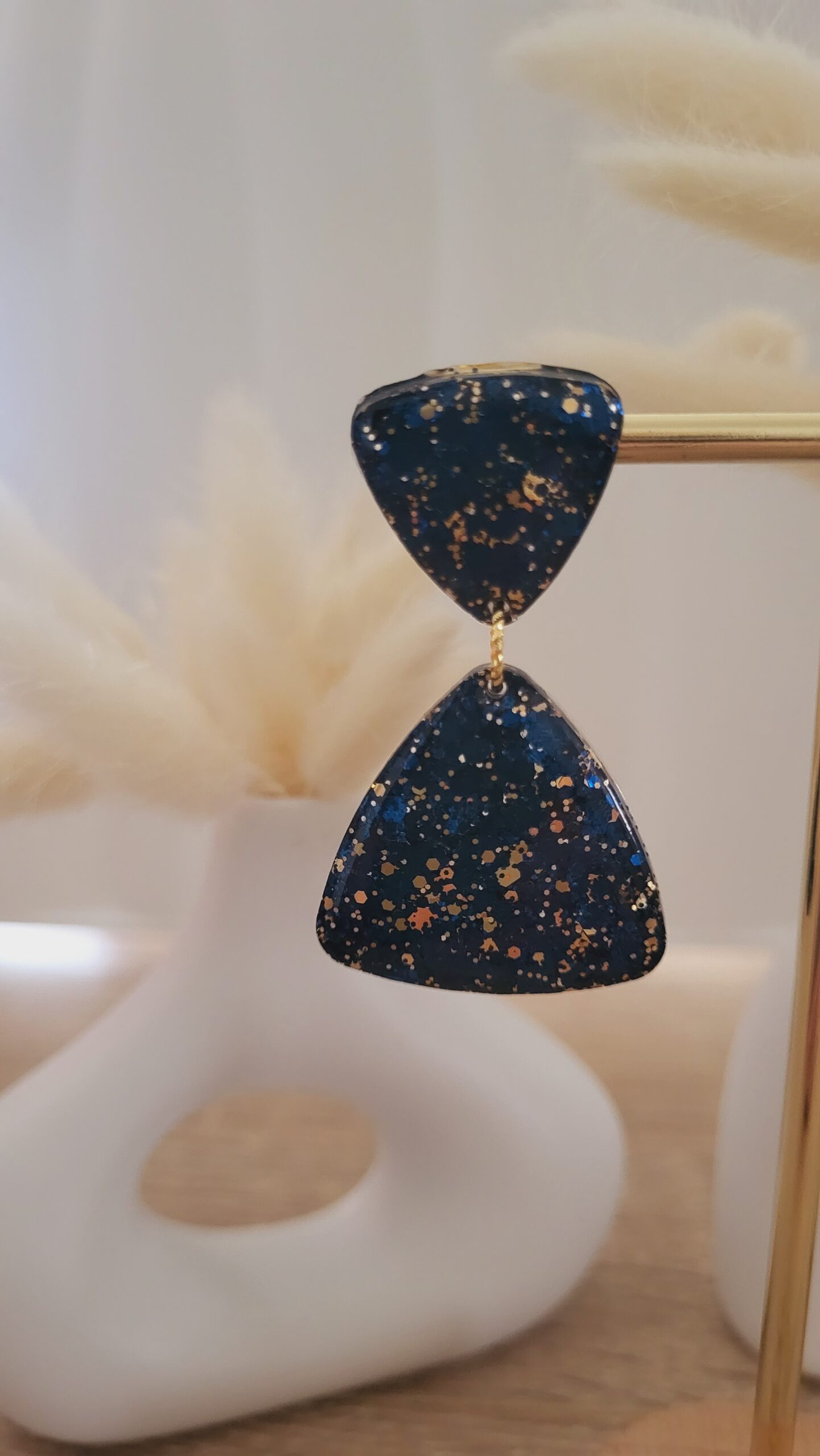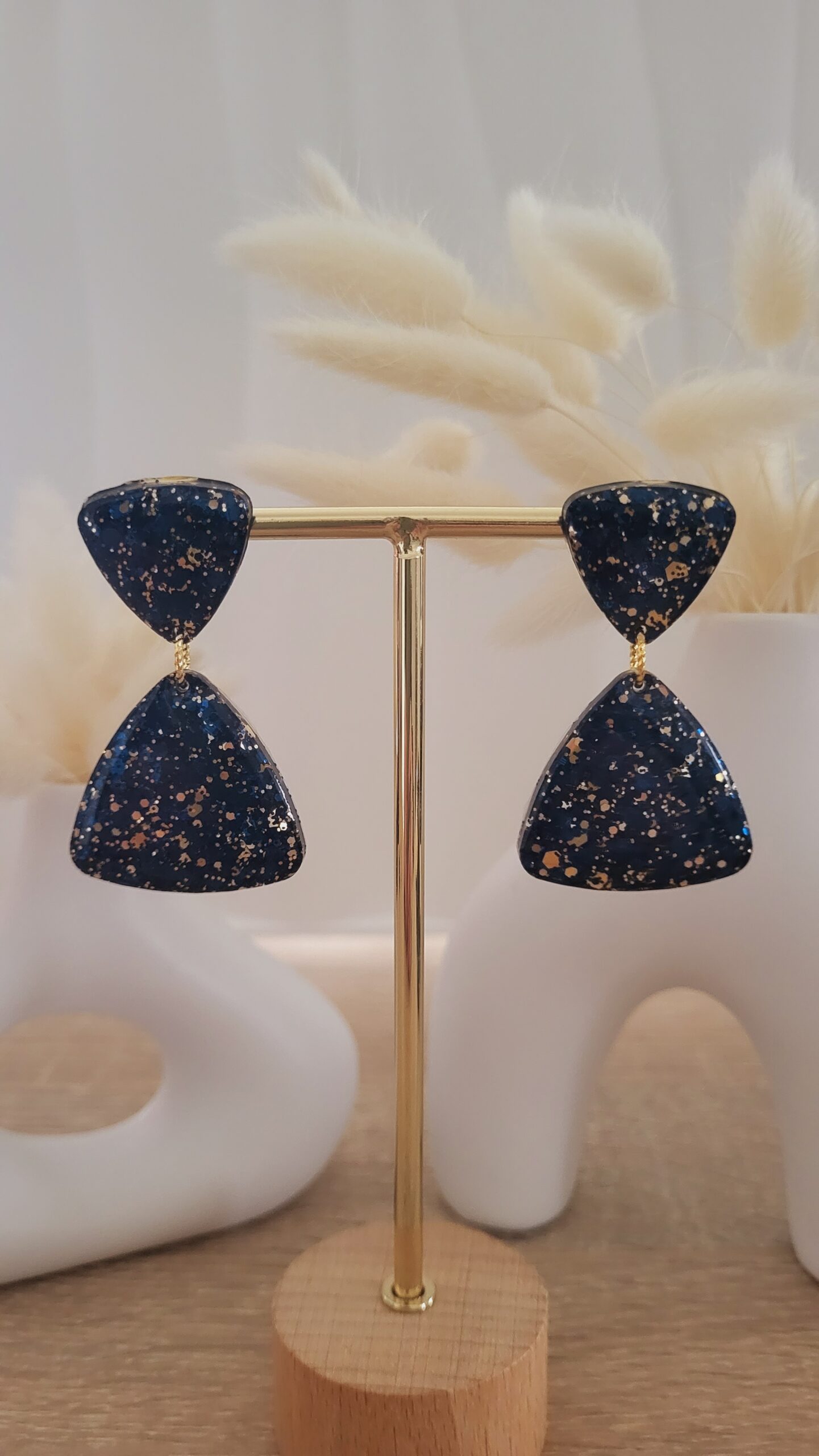✨️ Boucles avec pendentifs en forme de triangles en résine de 50mm.