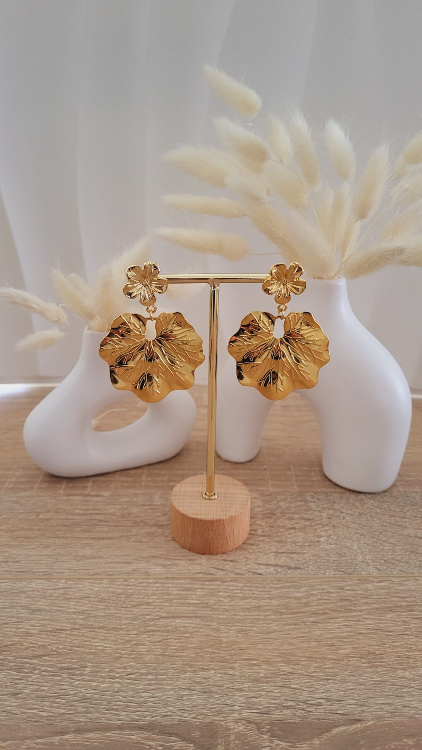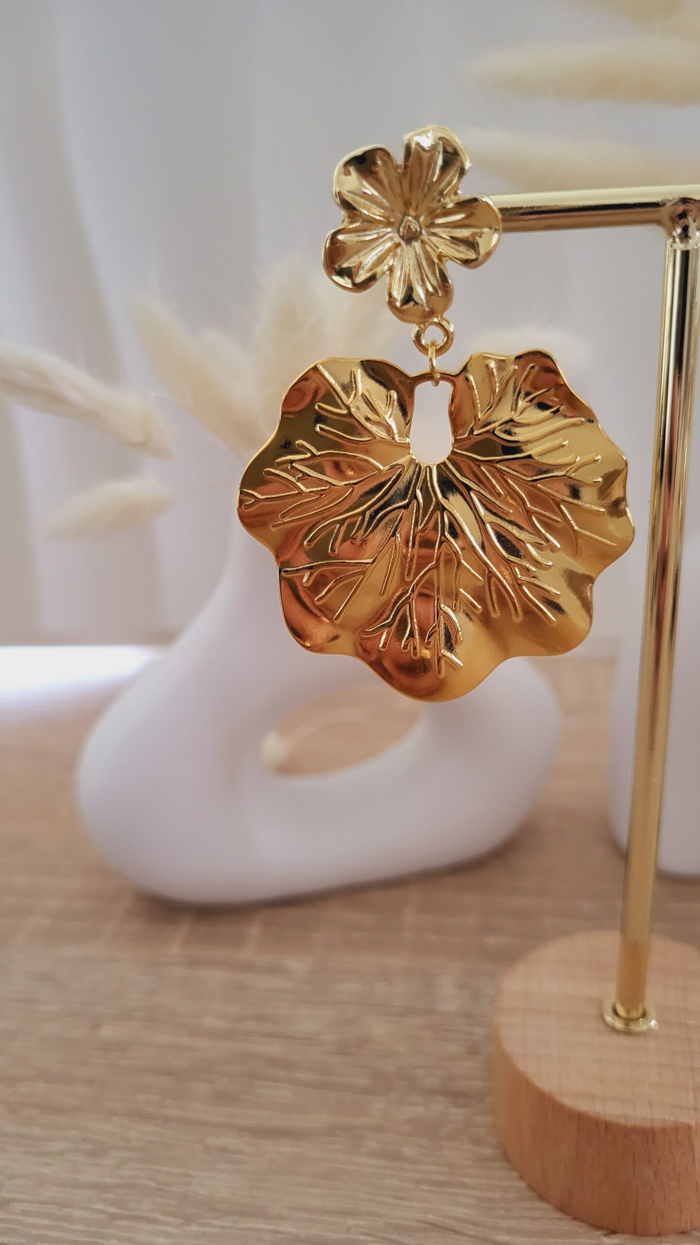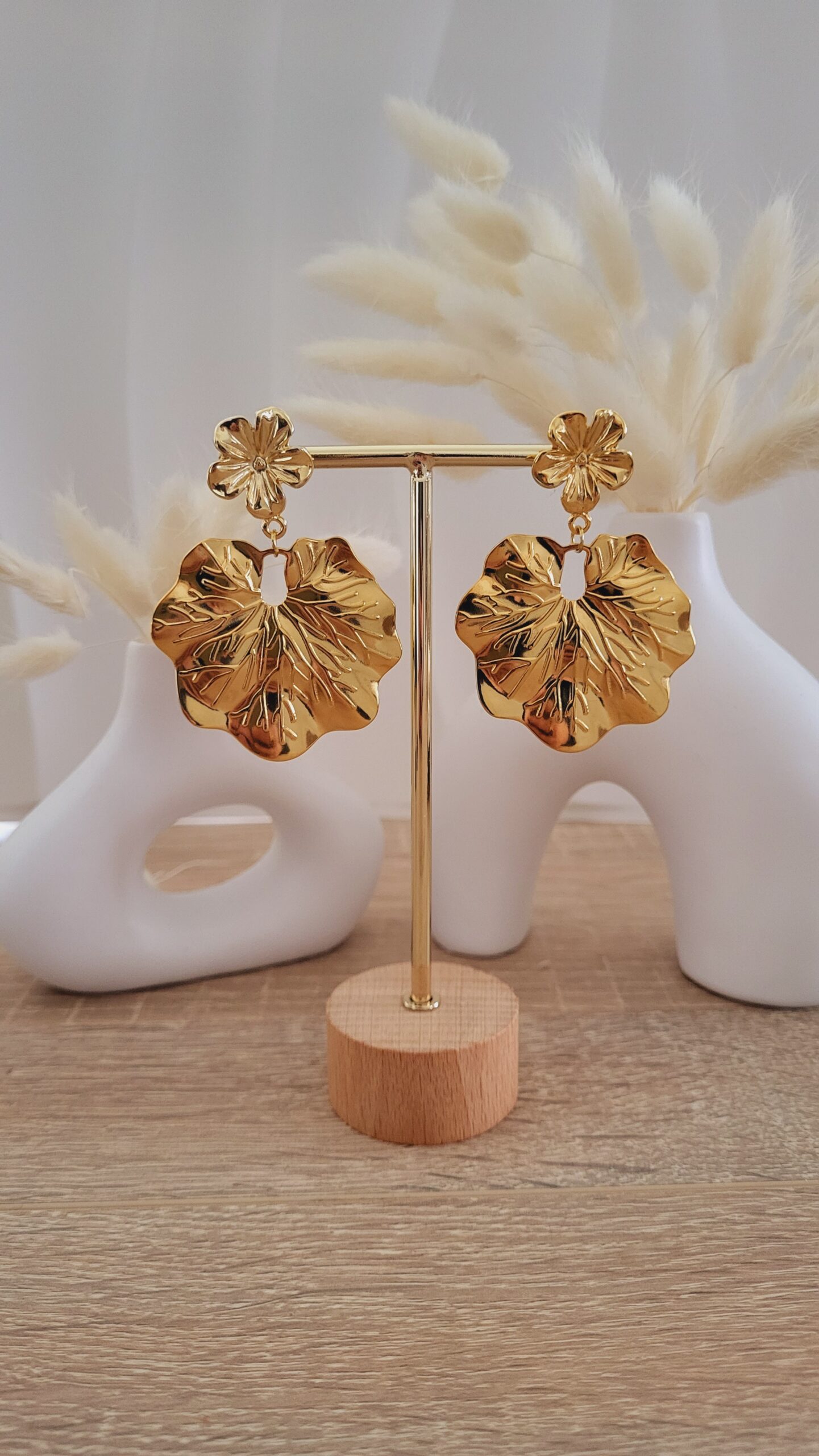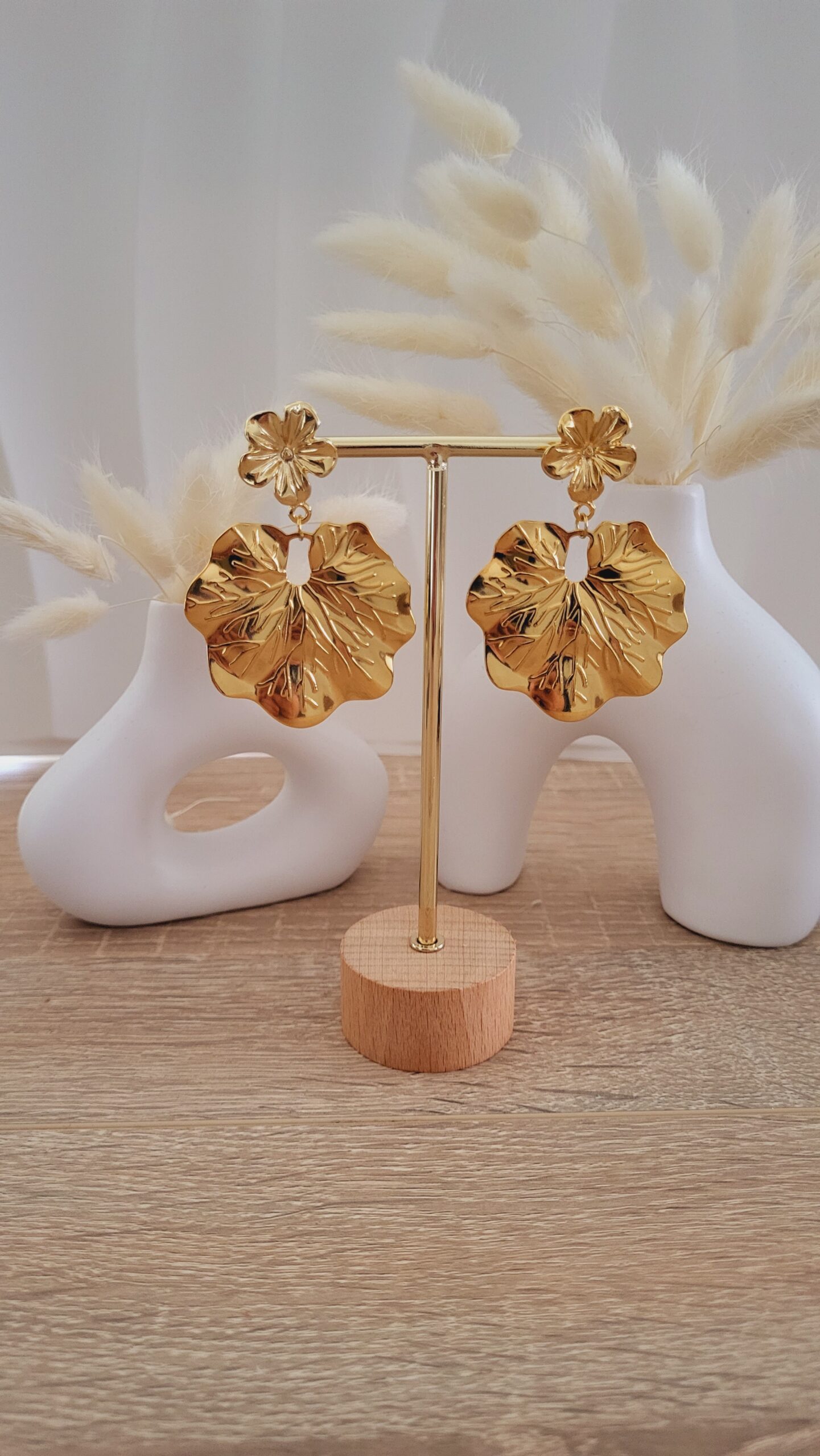 ✨️ Clous d’oreilles forme fleur de 18mm doré à l’or fin.